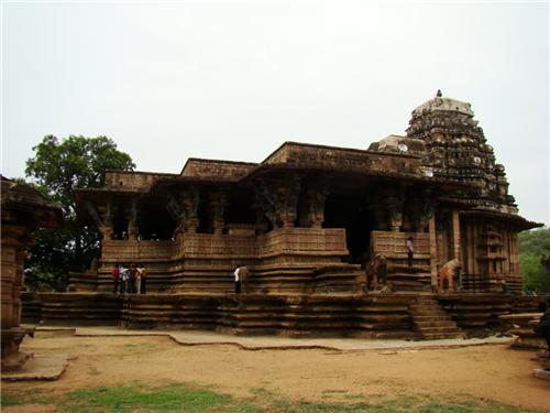 The Thousand Pillar Temple is an architectural marvel of Kakatiya architecture and sculpture.Built in 1163 by Rudra Deva, this temple is dedicated to Vishnu, Shiva and Surya. Note the rock cut elephants and Nandi in this temple.